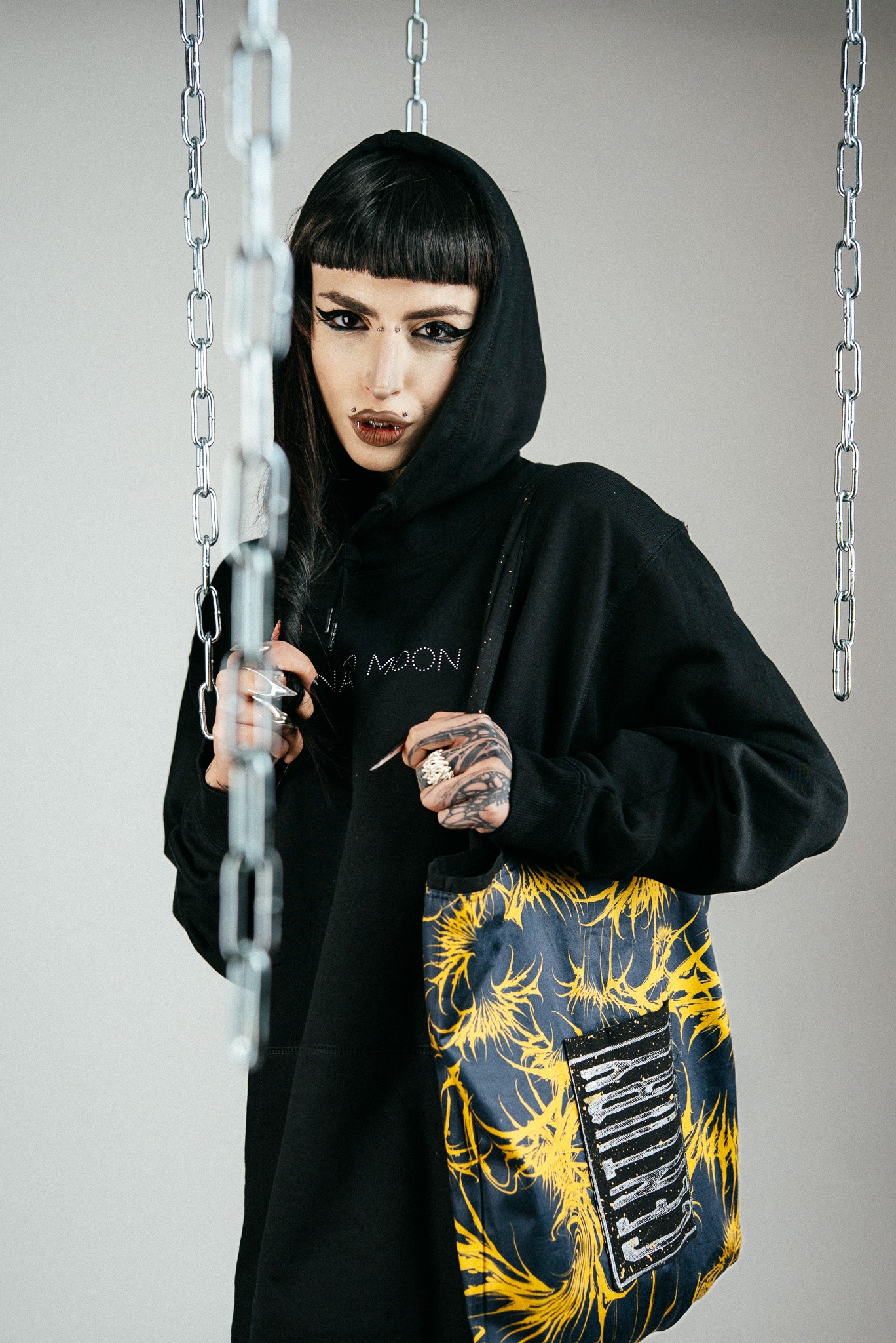 At DOOM & GLOOM – arts & crafts, fashion meets symbolism and a love for the dark and dreamy. Behind the label is Dachi, a trained fashion designer passionate about handmade details, unique patterns, and meaningful designs. With a focus on self-production and reworking, Dachi transforms old materials into new treasures, a practice rooted in childhood and carried into every piece today. Each creation reflects years of experience, curiosity, and celebrates the bright side of the dark side — wearable art that tells a story of transformation, sensitivity, and staying true to what matters.