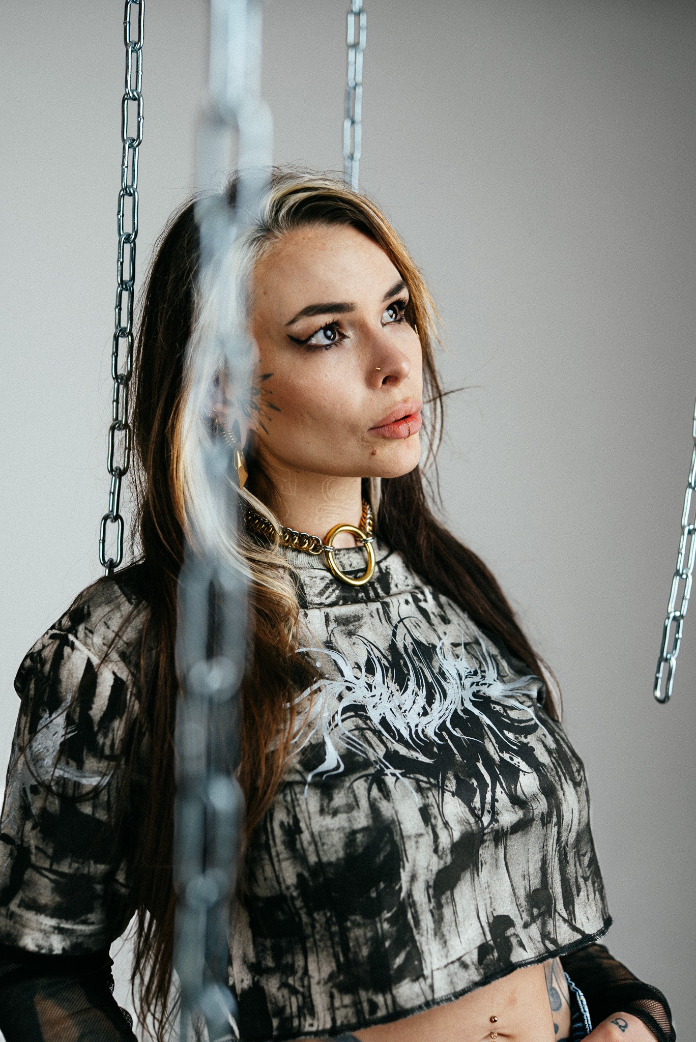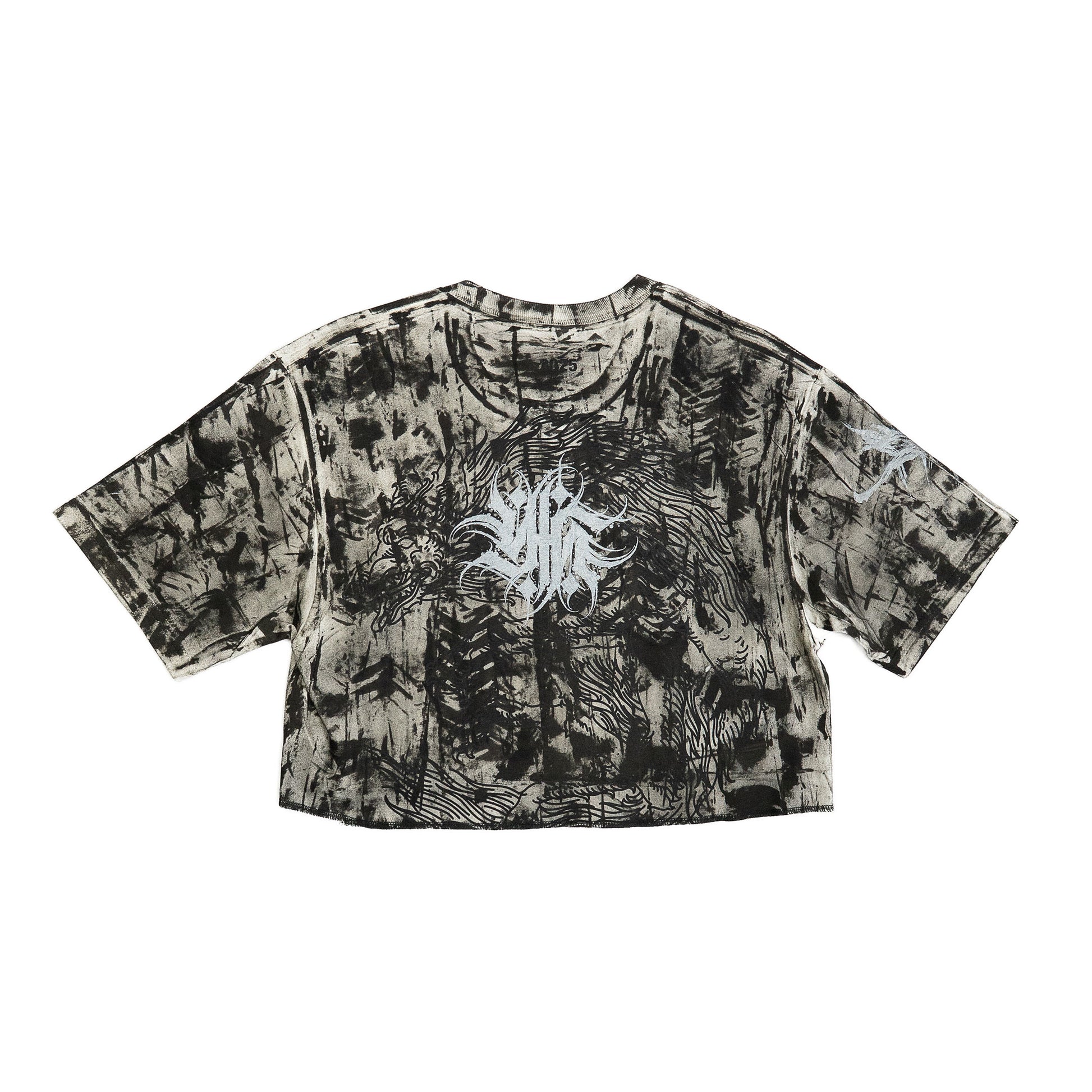 A truly unique, hand-painted cropped T-shirt where each brushstroke tells a story. Featuring screen-printed YH and REVA designs in silver, this piece blends expressive artistry with sustainable craftsmanship. Bleached and dyed in-house, the tee transforms reclaimed materials into a wearable work of art — a statement of individuality, resistance, and creative freedom.