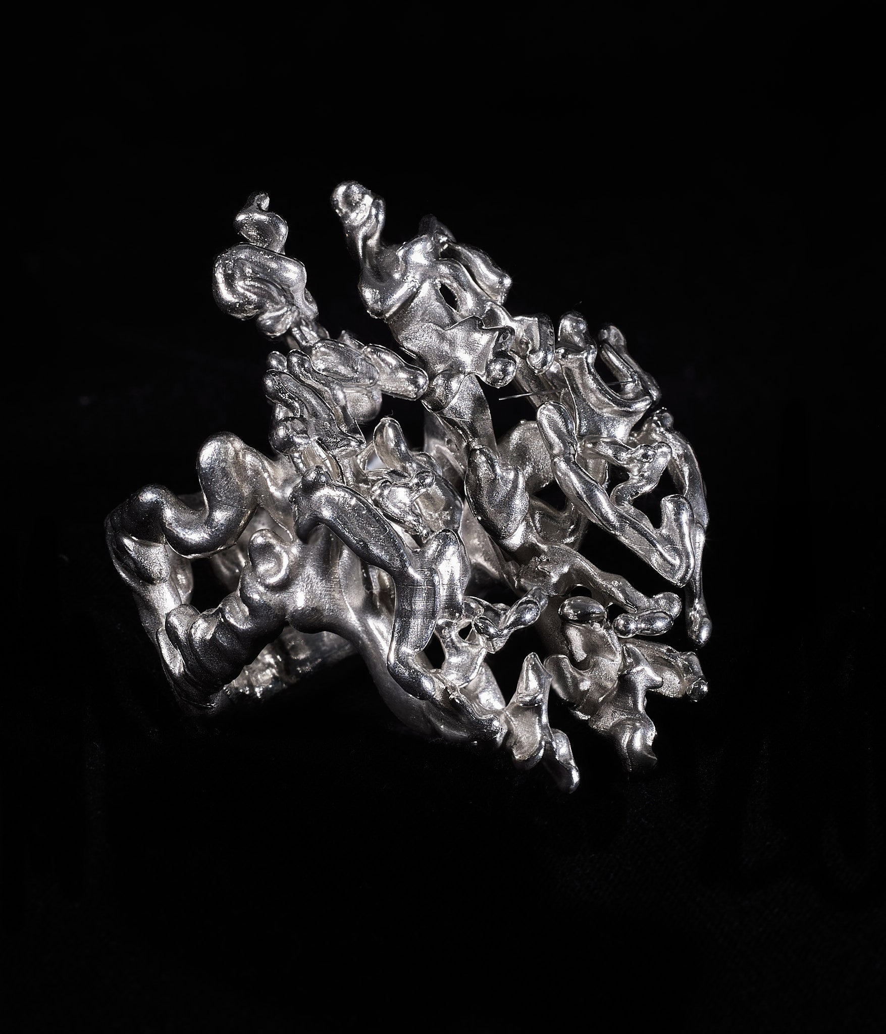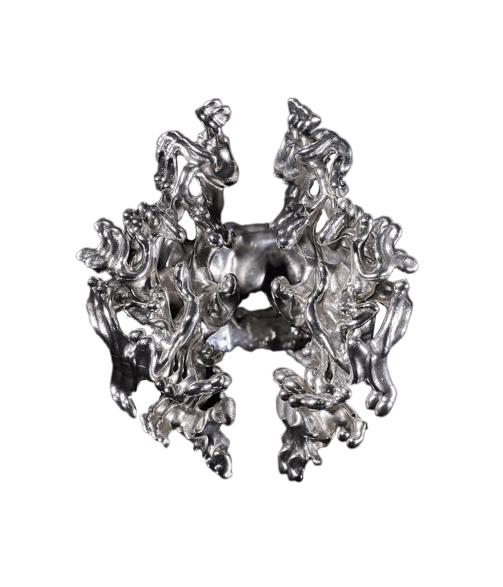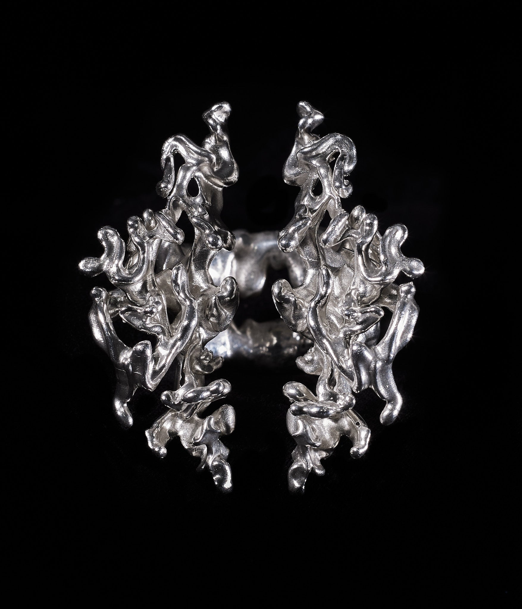 Each Ceremonial Tribute Ring is more than jewelry; it is a talisman of transformation, crafted from ethically sourced silver and shaped through avant-garde techniques that merge Peruvian craftsmanship with Berlin’s futuristic design ethos. The result is a piece that feels both ancient and modern—an emblem of love, protection, and quiet power.