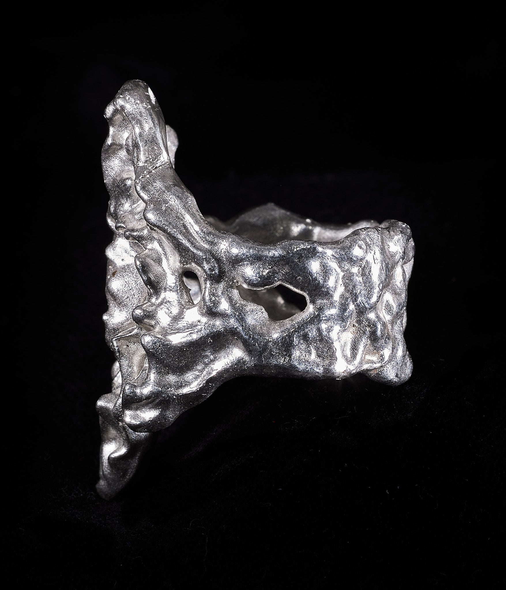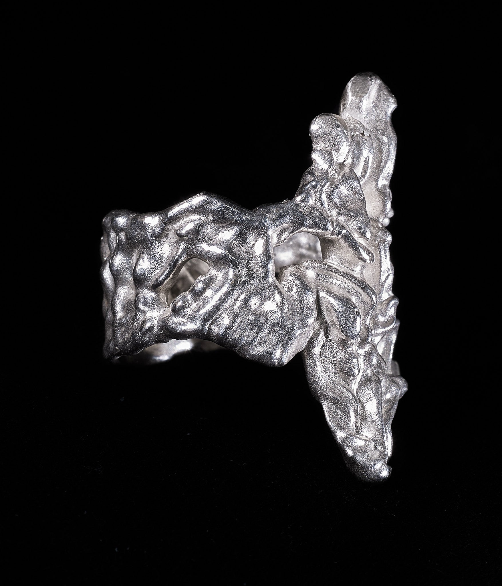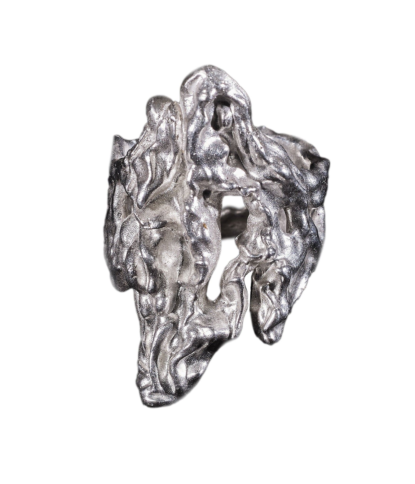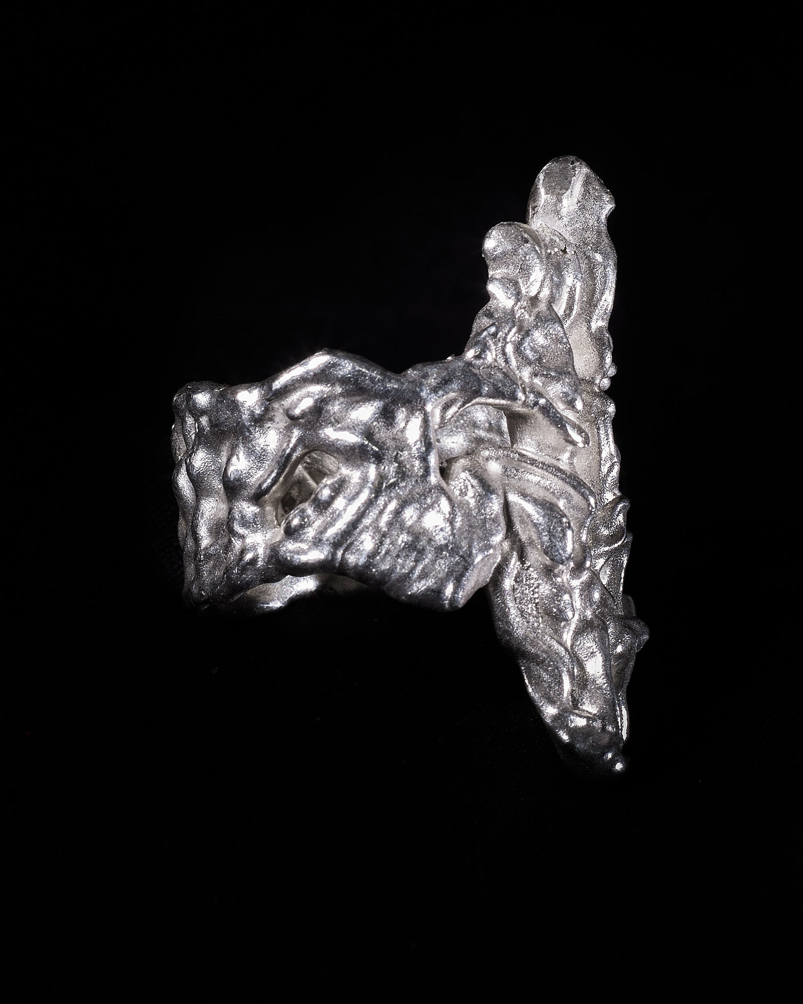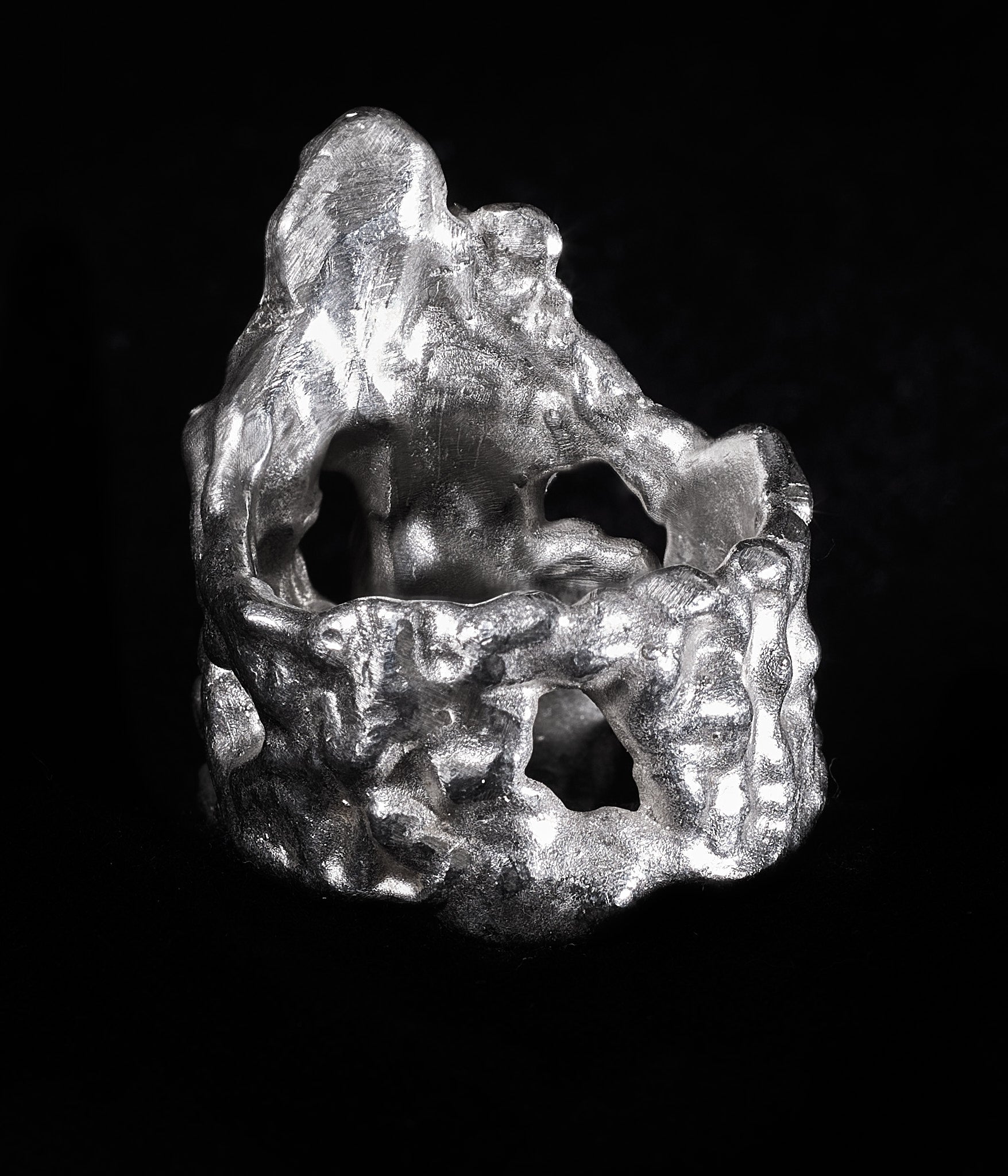 Shield commemorates the transformative marks left by life’sbattles. Each scar, each impact, is cast in silver, shaping the contours of our evolving selves. This ring honours the beauty forged in adversity a tribute to the resilience and strength that